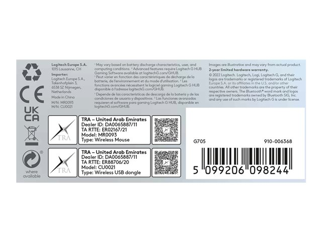 Logitech G G705 - Souris - petites mains - 6 boutons - sans fil - Bluetooth - récepteur USB Logitech LIGHTSPEED - blanc 910-006367