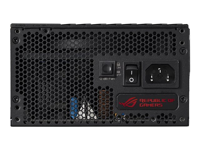 FonctionsCâbles à manchon, protection contre les surintensités, protection contre les surtensions, protection de surtension, protection de court-circuit, protection thermique, affichage OLED, entièrement modulaire, ASUS Aura Sync, refroidissement de 0 dB avec ventilateur à ailettes IP5X antipoussière, dissipateur thermique ROG
