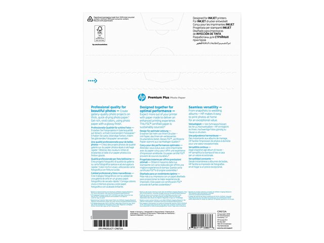 HP Premium Plus Photo Paper - Brillant - A4 (210 x 297 mm) - 300 g/m² - 20 feuille(s) papier photo - pour Officejet 52XX, 6000, 6000 E609, 68XX, 7000 E809, 80XX; Photosmart B110, Wireless B110 CR672A