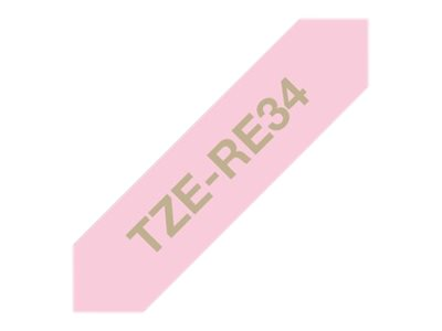 Brother TZe-RE34 - Or sur rose - Rouleau (1,2 cm x 4 m) 1 cassette(s) bande de ruban - pour Brother PT-D600, H110; P-Touch PT-D450; P-Touch Cube PT-P300; P-Touch Embellish PT-D215