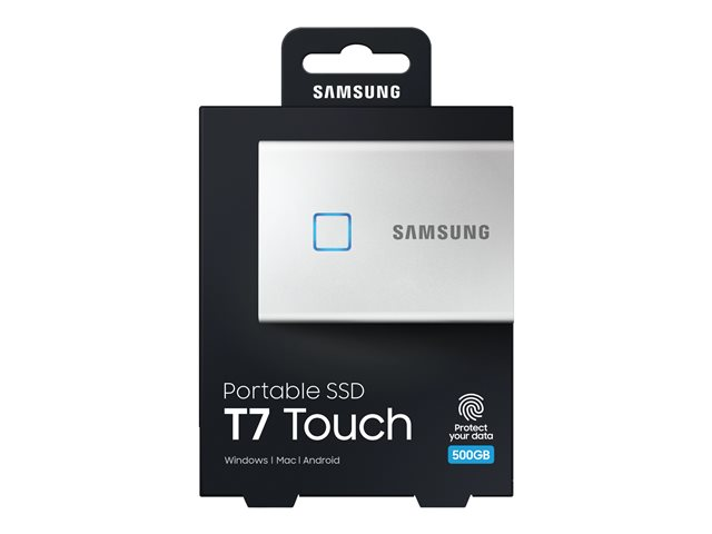 Samsung T7 Touch MU-PC500S - SSD - chiffré - 500 Go - externe (portable) - USB 3.2 Gen 2 (USB-C connecteur) - AES 256 bits - argent MU-PC500S/WW