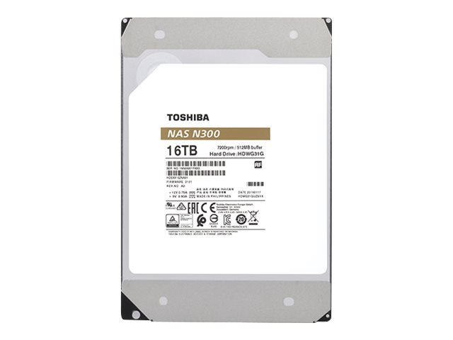 Toshiba N300 NAS - Disque dur - 16 To - interne - 3.5" - SATA 6Gb/s - 7200 tours/min - mémoire tampon : 512 Mo