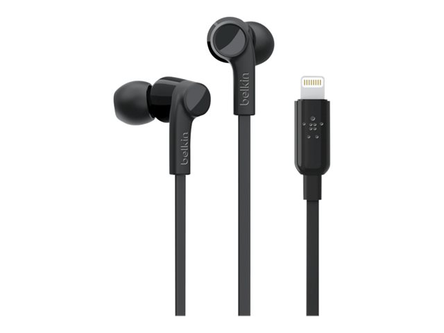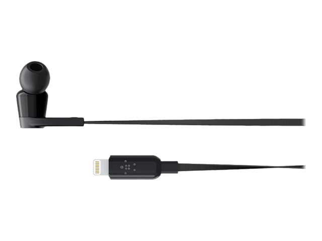 Belkin ROCKSTAR - Écouteurs avec micro - intra-auriculaire - filaire - Lightning - isolation acoustique - noir - pour Apple 10.5-inch iPad Pro; iPad mini 4; iPhone 7, 7 Plus, 8, 8 Plus, X, XR, XS, XS Max G3H0001BTBLK