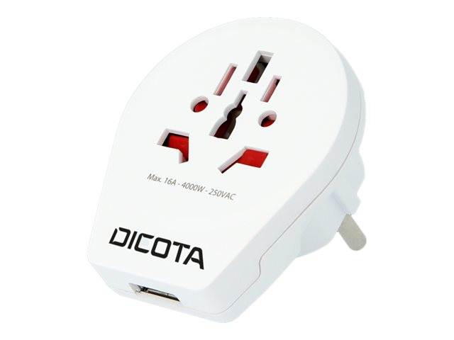 DICOTA World Adapter PRO & USB - Adaptateur secteur - CA 110/220 V - blanc D31282