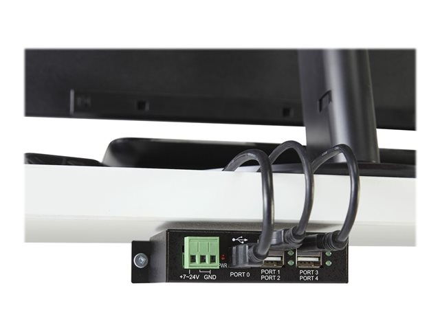 Ce hub USB industriel offre des performances fiables, tout étant équipé d''un boîtier métallique pour une utilisation intensive. La vaste plage d''entrée en courant continu de son bornier (7 à 24 V CC) vous permet d''alimenter le hub selon vos besoins, en fonction de vos propres capacités d''entrée d''alimentation.